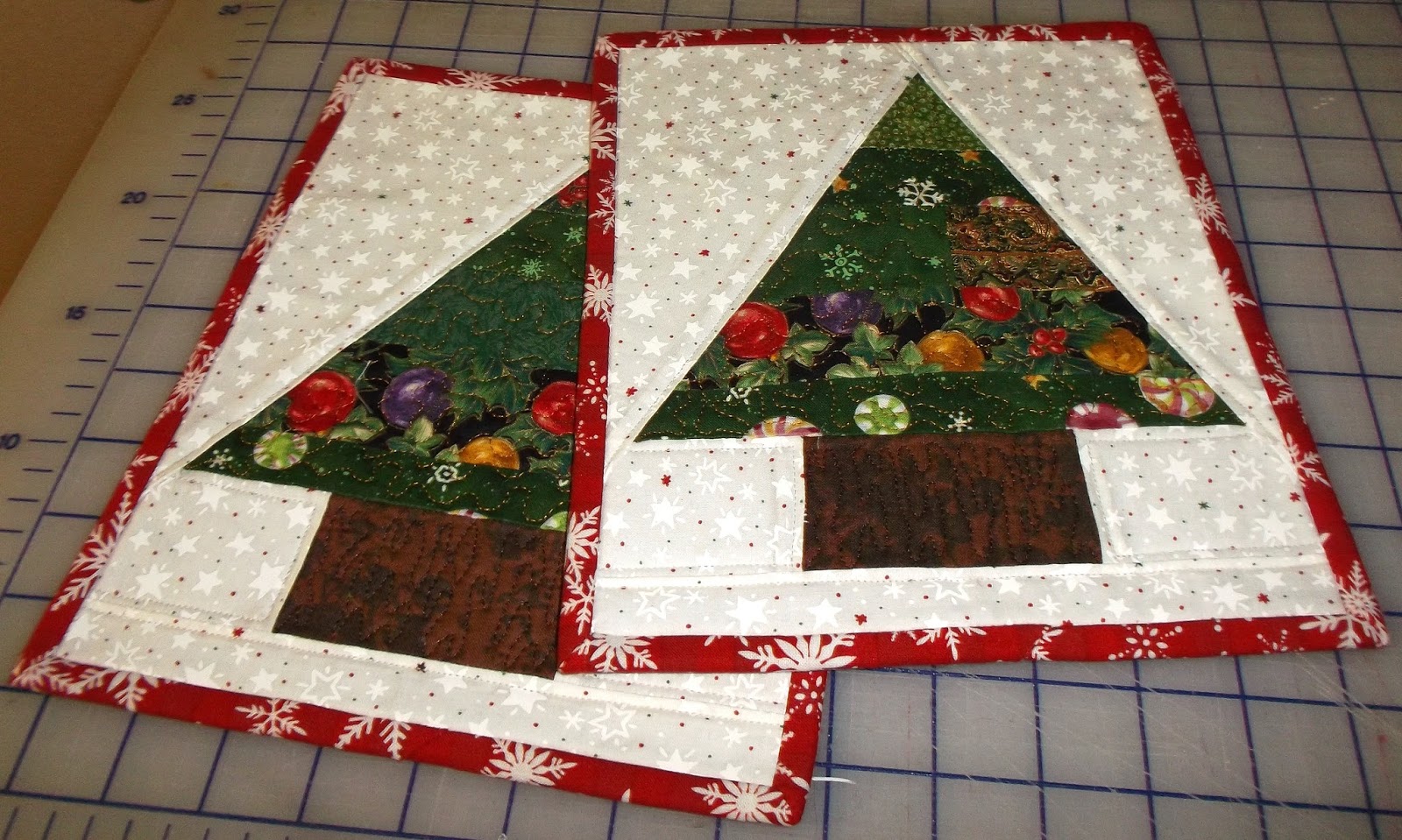 The 5 mug mats are just pieced as I could. They were faster than the paper pieced hot pads. I had fun doing them.